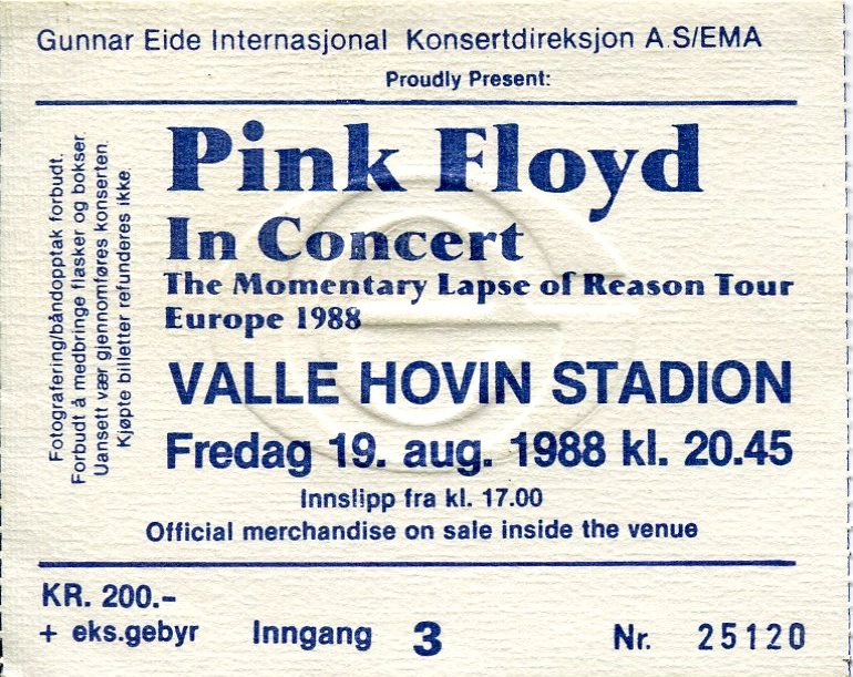 Pink Floyd The Momenary Lapse of Reason Tour Valle Hovin |