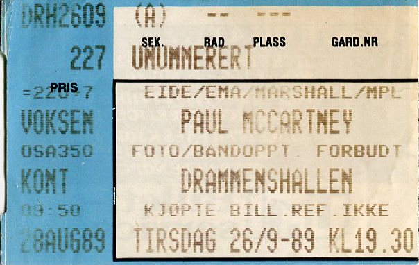 Paul McCartney The Paul McCartney World Tour Drammenshallen |