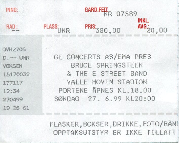 Bruce Springsteen Reunion Tour Valle Hovin |